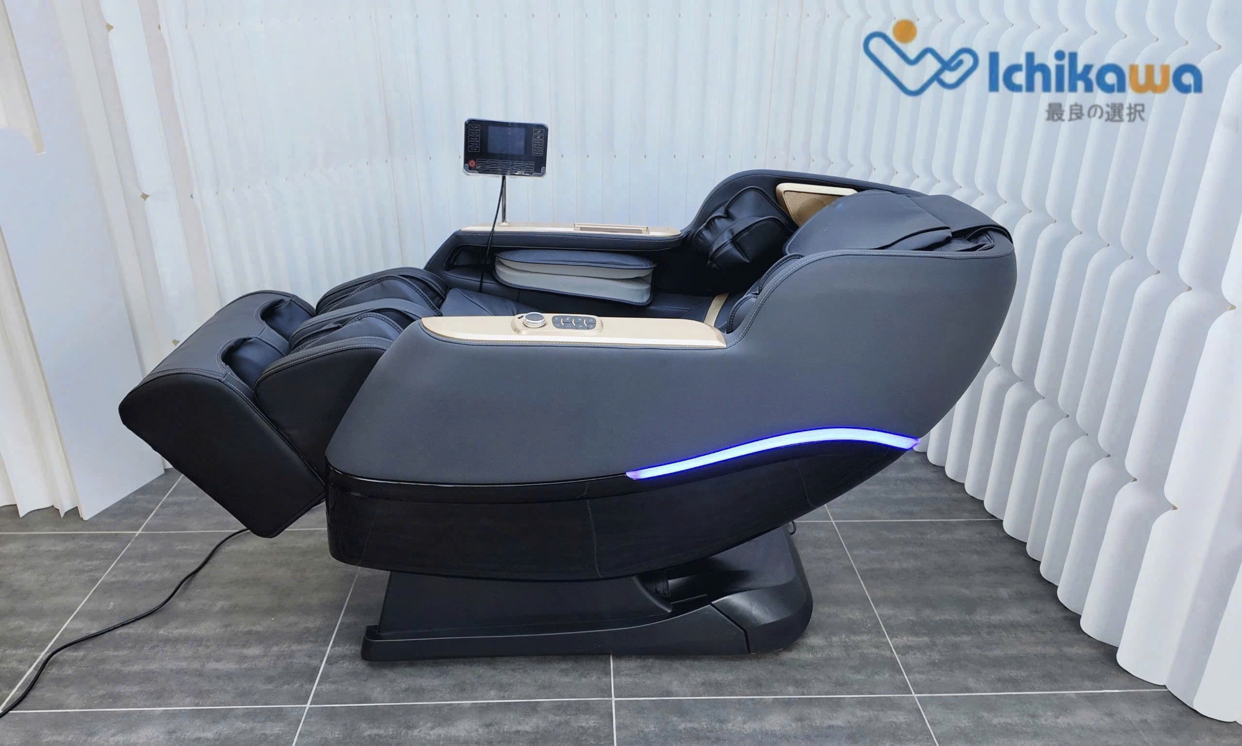 ICHIKAWA 1128 マッサージチェアは洗練された高級感のあるデザインです。エレガントな色とモダンなラインを備えたこの製品は、健康製品であるだけでなく、生活空間の芸術作品でもあります。高級レザーと柔らかいクッションが快適な感触を生み出し、あらゆるマッサージ体験にすぐに対応できます。
