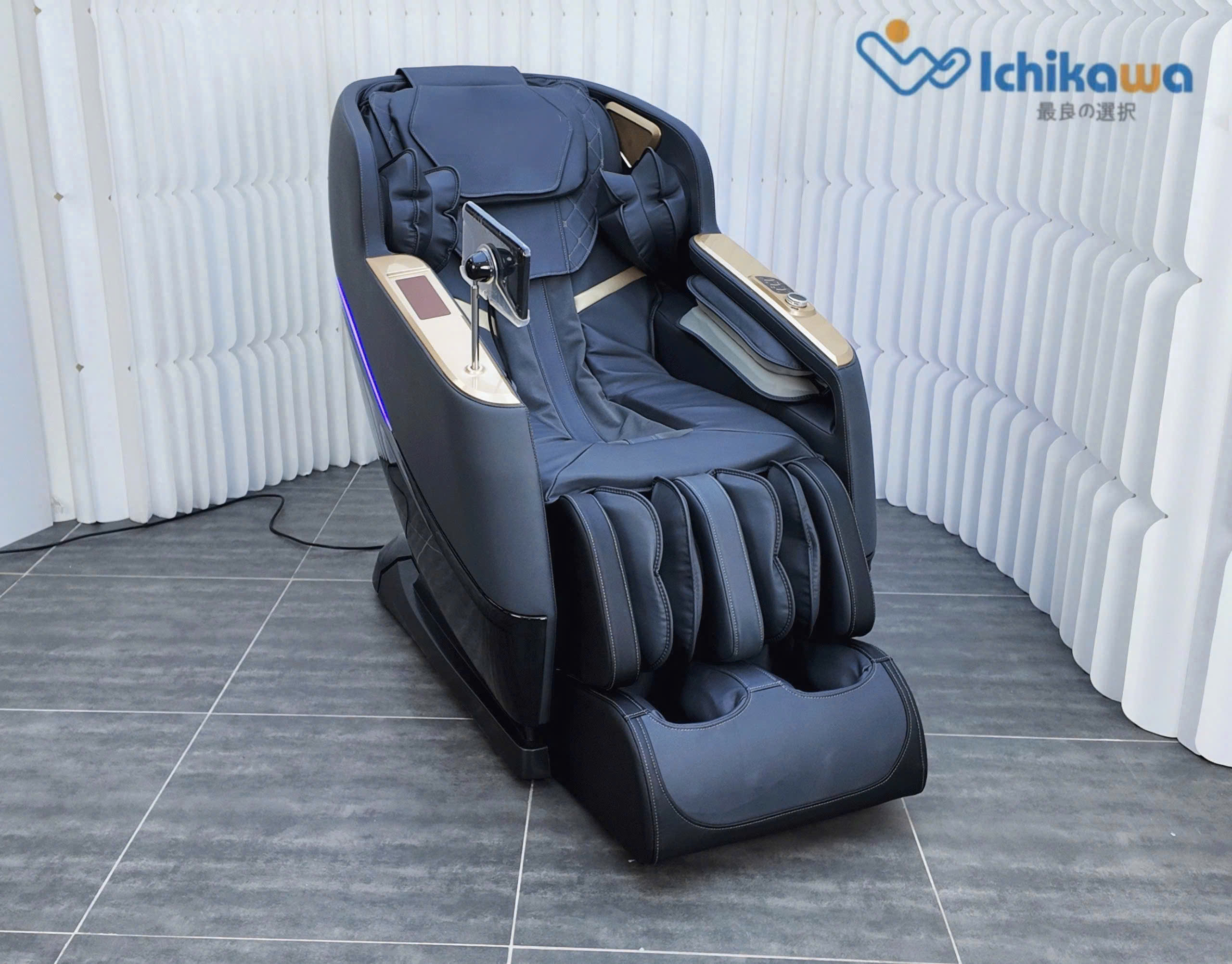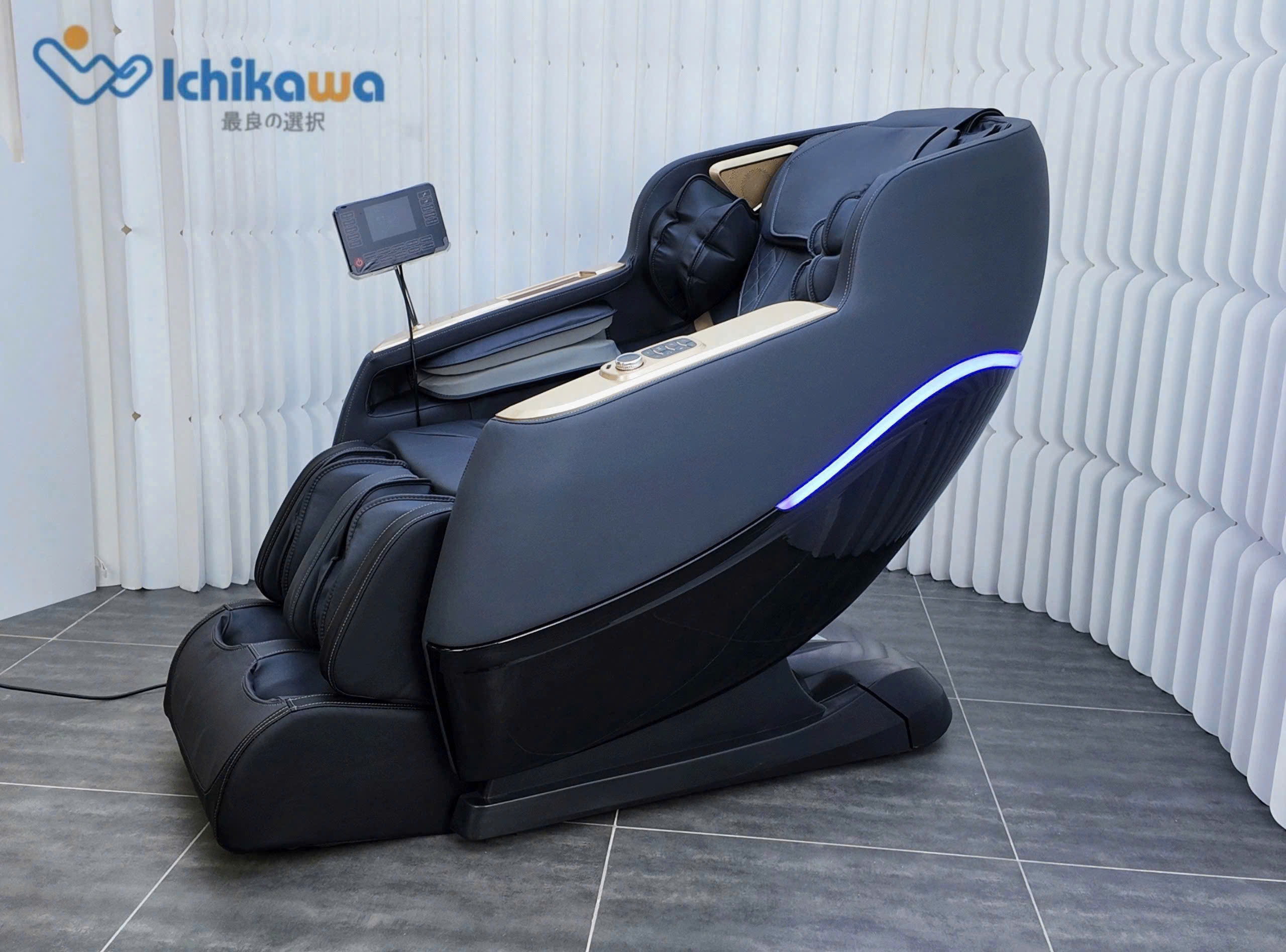 - ICHIKAWA 1128 マッサージチェアは、現代のマッサージチェア業界の改善と発展に伴い、今日の最先端のマッサージ技術である最高の 4D マッサージ技術を搭載しています。高品質のシリコンローラーを使用したマッサージ技術は、快適さと最大限のリラクゼーションを生み出します。ムービングローラーはより遠くまで到達し、より広い範囲の身体接触を可能にします。