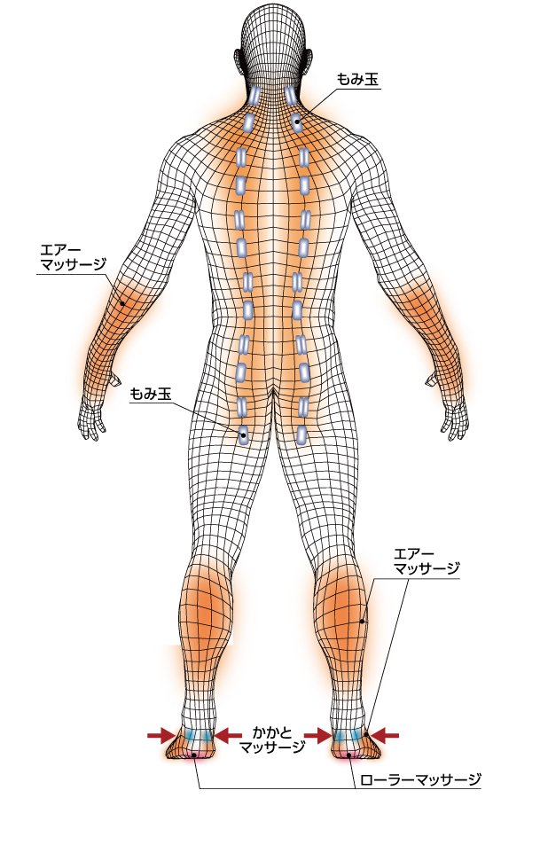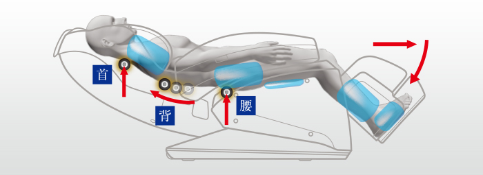 人間工学に基づいて設計されたレールと組み合わせた高度なマッサージ技術