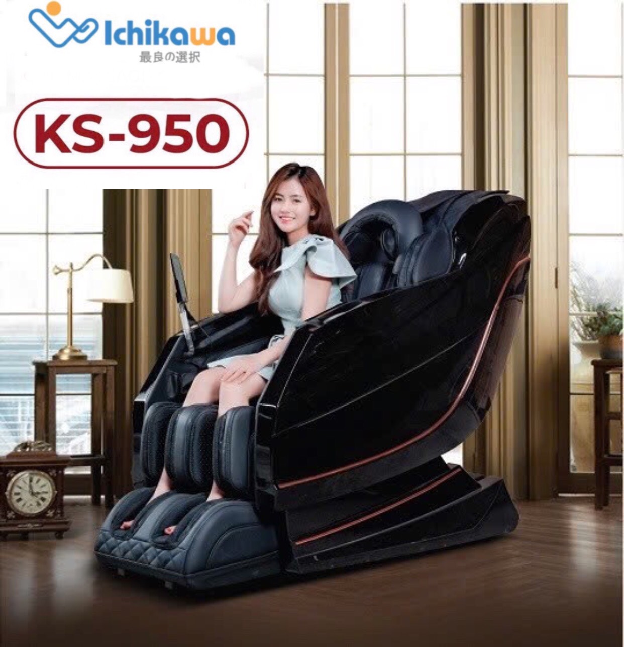 – ICHIKAWA KS-950 高級マッサージチェアは、 エンジニアとデザイナーによって外観の細部に至るまで細心の注意が払われ、住宅所有者の品格を確認します。