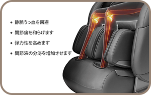 4Dシリコンマッサージ技術: ICHIKAWA JP-666マッサージチェアの4Dローラーは、上下左右前後に動くスマートな動きで、深い筋肉の痛みにアプローチします。プロのマッサージ師の手技を再現した施術で、ローラーが各ツボに深く押し込まれ、瞬時に全身の心地よさを実感できます。